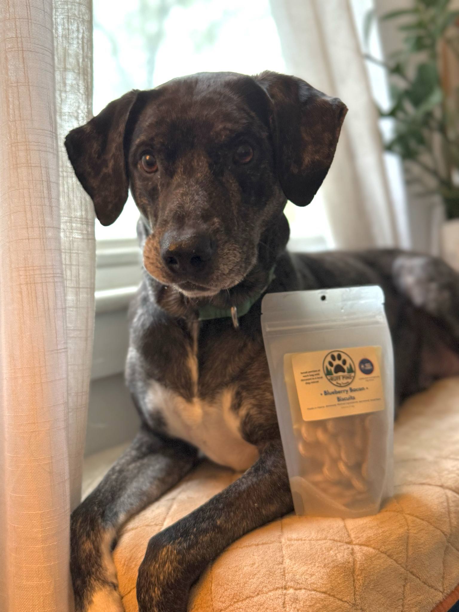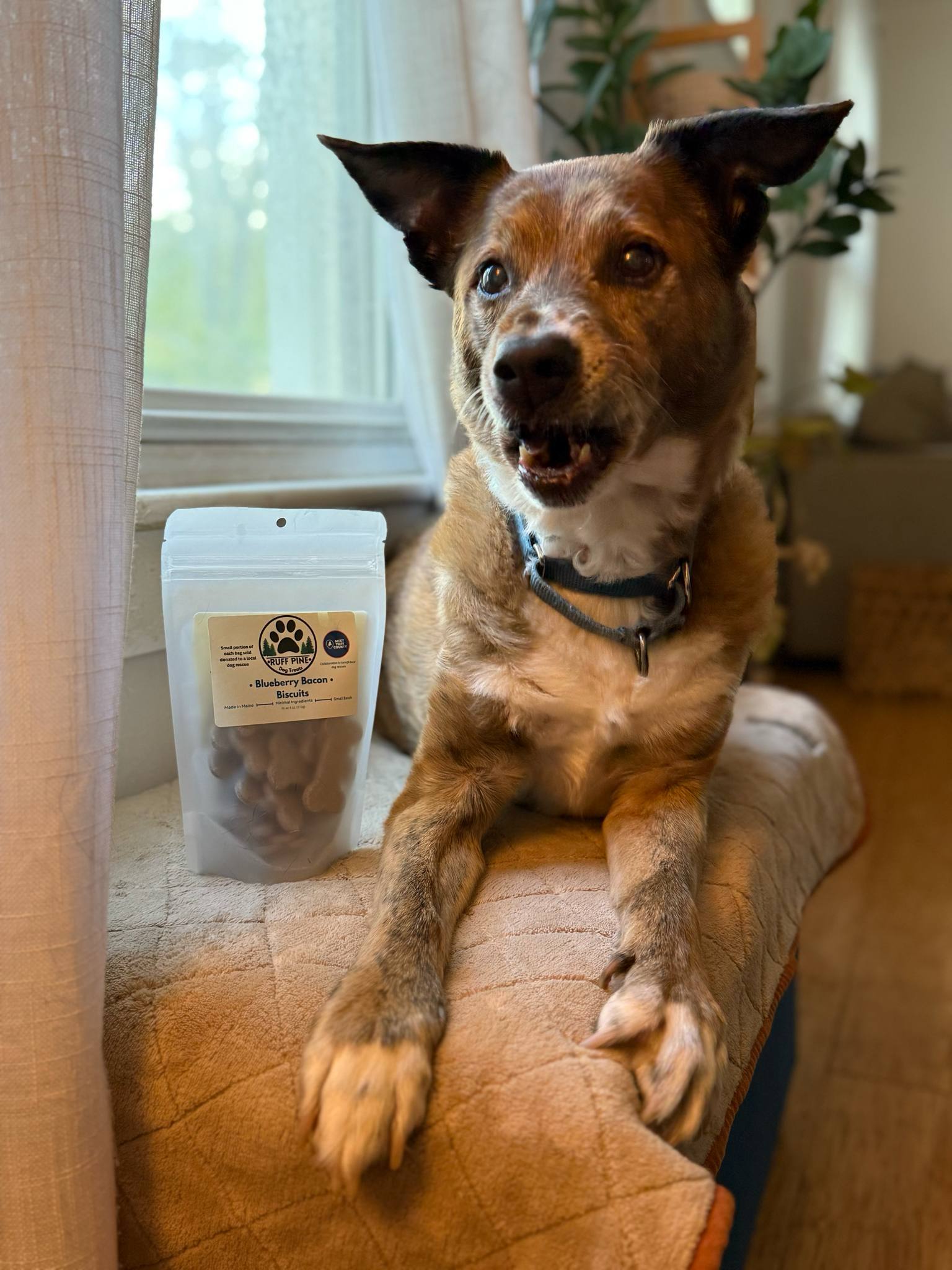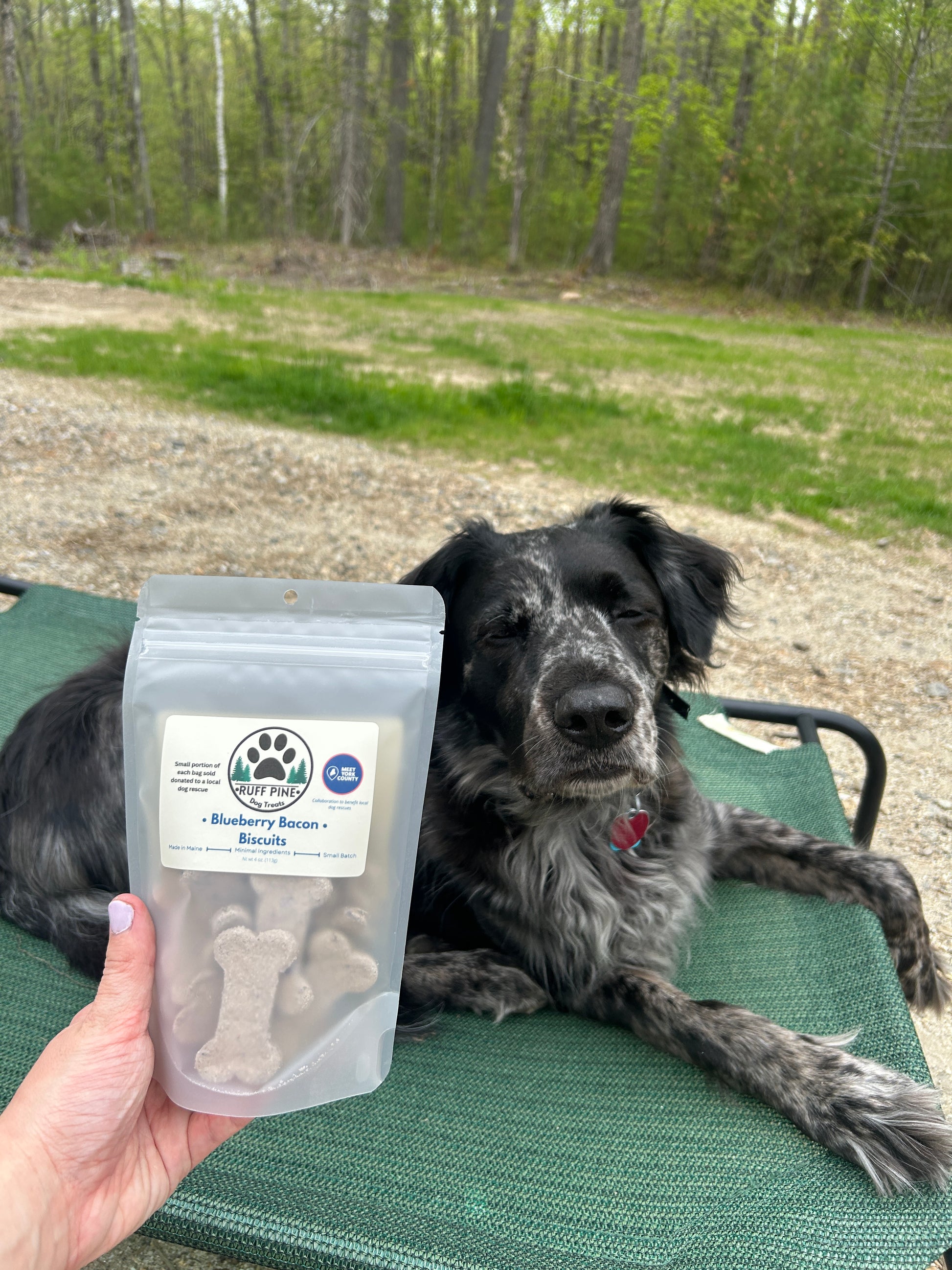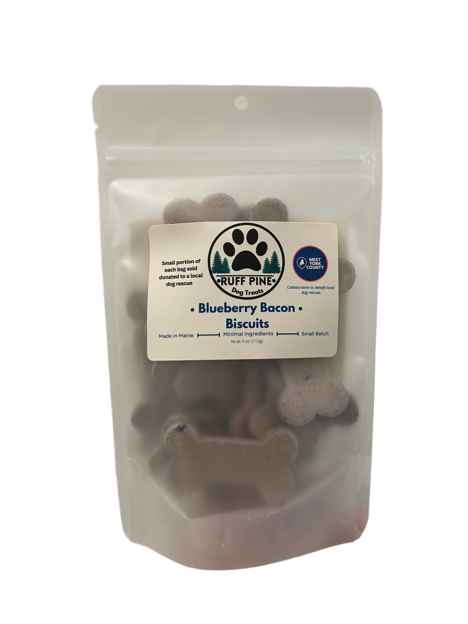 We have collaborated with Meet Your County to bring you these delicious Blueberry Bacon Biscuits! A portion of each sale is donated to a local dog rescue right here in Maine. These biscuits are made with minimal ingredients in small batches. We hope your pup loves them. We know they will be "Ruffin" for more!