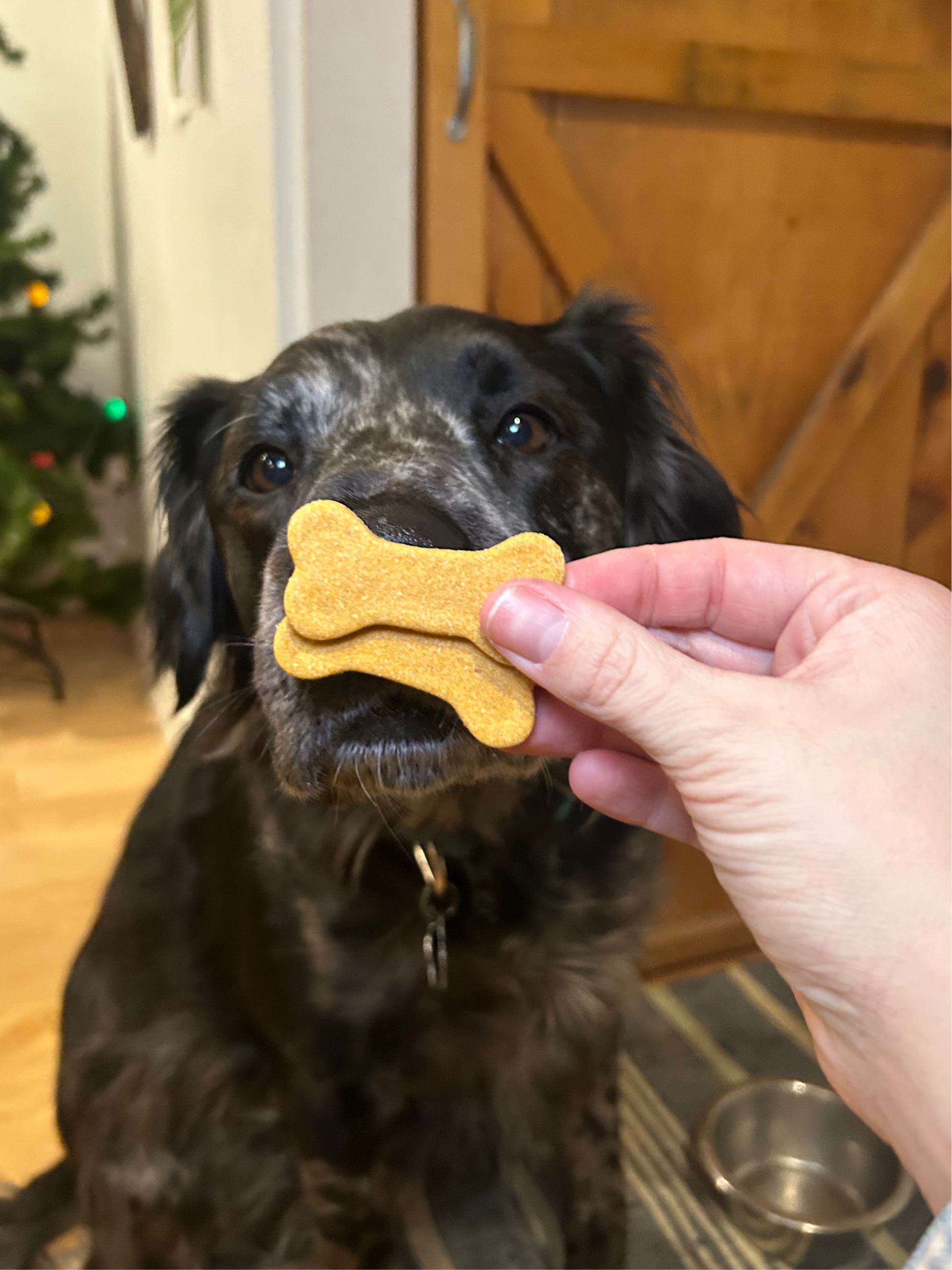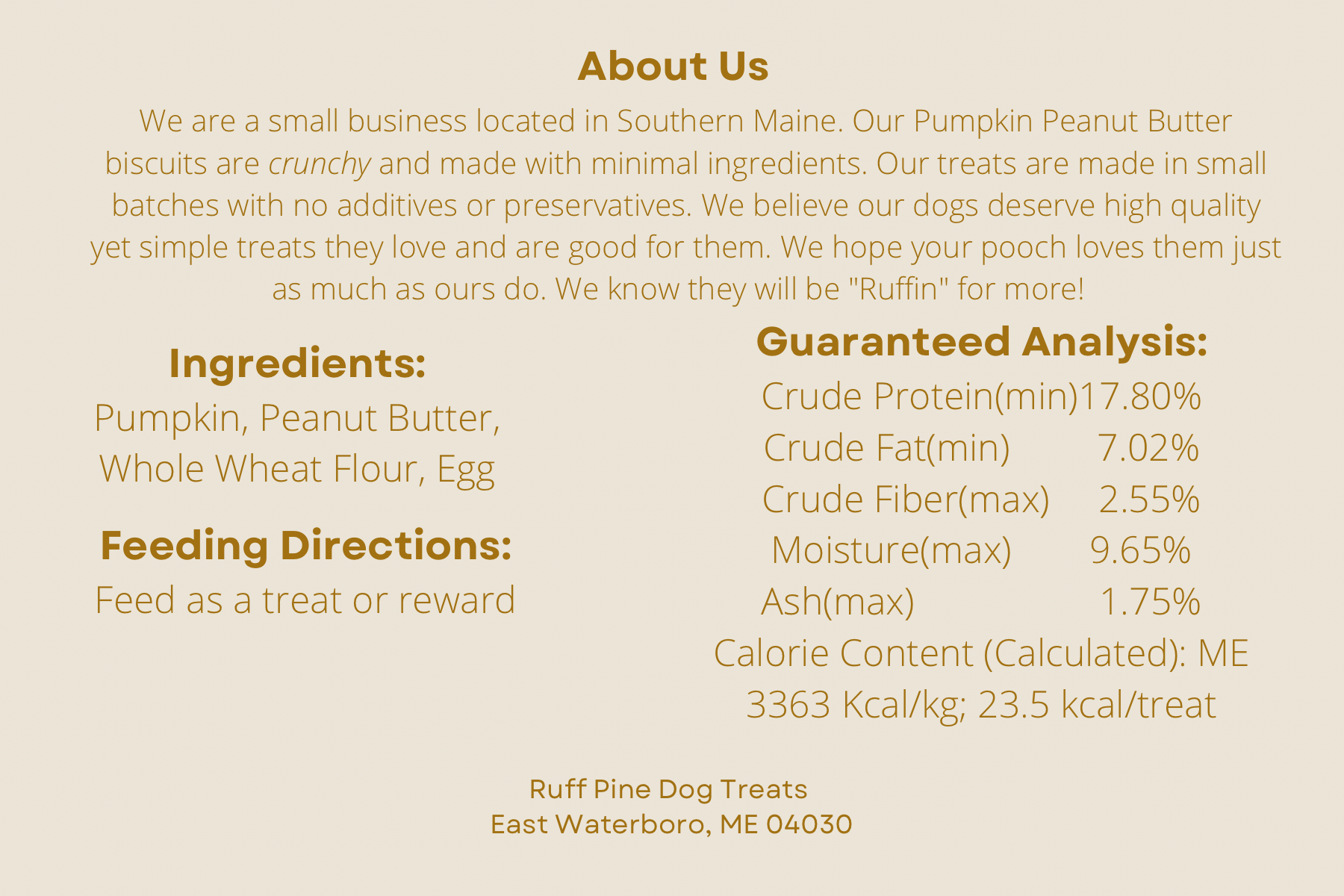 Our Pumpkin Peanut Butter biscuits are crunchy and made with minimal ingredients. Each season we plan to make different shapes! These treats are delicious and we know your pup will love them.